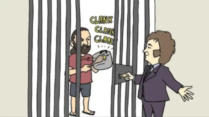 El presidente Javier Milei parece hacer oídos sordos a los cacerolazos espontáneos que surgieron en los dos últimos días en la ciudad de Buenos Aires y en otras ciudades del país. Después de decir que «hay gente que sufre el Síndrome de Estocolmo», ahora compartió una caricatura en la que aparece abriéndole la puerta de una celda a un hombre con una cacerola.