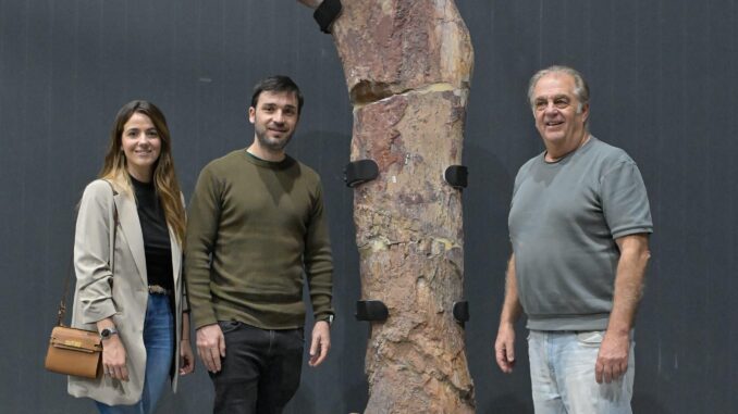 En el marco de los aportes y el acompañamiento que llevará adelante la Fundación Banco del Chubut para la finalización del nuevo Museo Egidio Feruglio (MEF), la presidenta de dicha entidad, Ornella Costa, recorrió junto al gobernador Ignacio «Nacho» Torres los avances e instancias de la etapa final de montaje de la exhibición del nuevo edificio de Trelew, el cual forma parte del proyecto de remodelación que se comenzó a delinear hace casi diez años a partir del descubrimiento, en la región, del dinosaurio más grande del mundo.