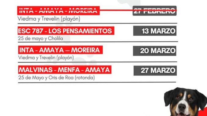 20 de marzo: barrios INTA, Amaya y Moreira (esquina Viedma y Trevelin).