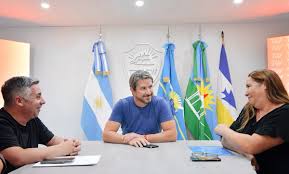 El intendente de Trelew, Gerardo Merino, recibió a la nueva Comisión Directiva de la Asociación de Hockey Valle del Chubut, encabezada por su presidente Justo Padín, junto a la primera vocal titular, Anabella Pérez. El encuentro se realizó en el Salón Histórico y contó con la participación de la secretaria de Bienestar Integral, Mariana Medina, y el coordinador de Deportes, Gustavo Underwood.