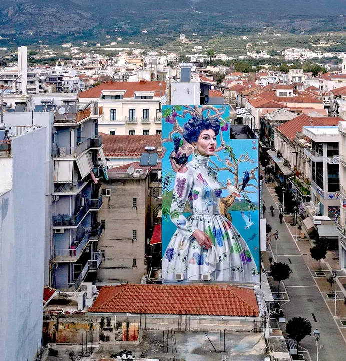 El galardón, otorgado tras una votación internacional organizada por la comunidad de Street Art Cities, convirtió al mural en nuevo punto de referencia para esta localidad del sur de Grecia, ubicada a unos 240 kilómetros al suroeste de Atenas y conocida históricamente por la producción de aceitunas y aceite de oliva.