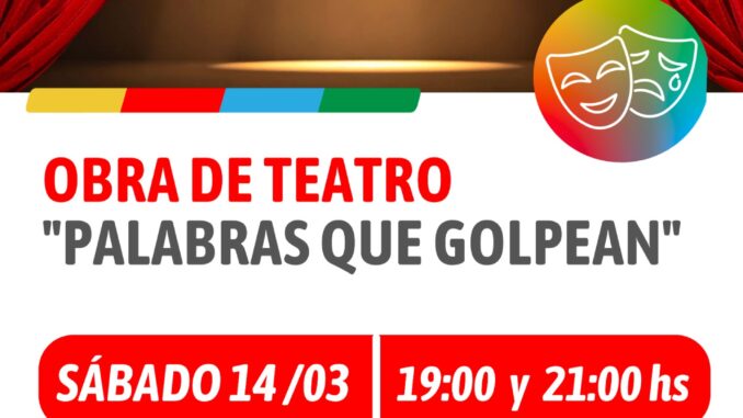 Trelew será escenario del estreno de la obra de teatro autobiográfica “Palabras como Golpes”, una propuesta escénica que aborda distintas formas de violencia presentes en la vida cotidiana. La función se realizará el sábado 14 de marzo en el Centro Cultural, con el acompañamiento de la Municipalidad de Trelew, en el marco de las actividades culturales vinculadas al Mes de la Mujer.